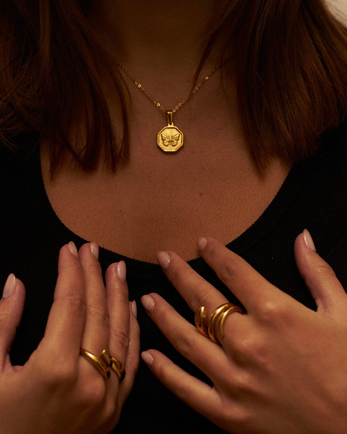 Gold finish: 18k eco-friendly gold plating. Adjustable chain: 45 + 5 cm (extension included). Hypoallergenic: Suitable for all skin types.