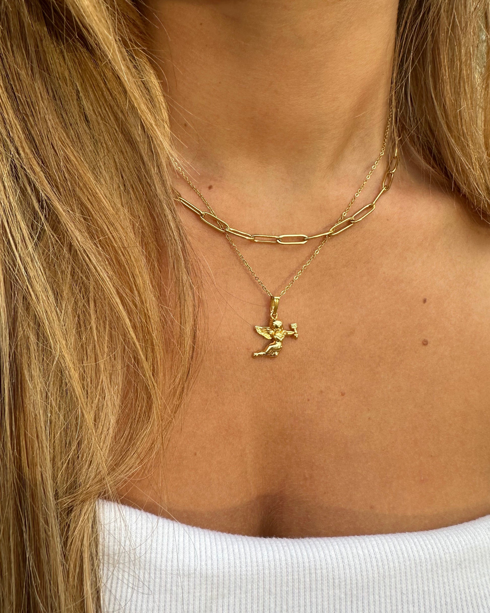 Acabados en oro: Baño de oro ecológico de 18k. Cadena ajustable: 45 + 5 cm (extensión incluida). Hipoalergénica: Apta para todo tipo de pieles